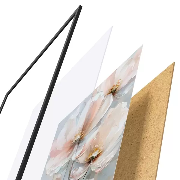 L’affiche encadrée est composée d’un cadre, d’un plexiglas, d’une image imprimée et d’un support en aggloméré. Elle est prête à être accrochée au mur grâce aux fixations situées à l’arrière.