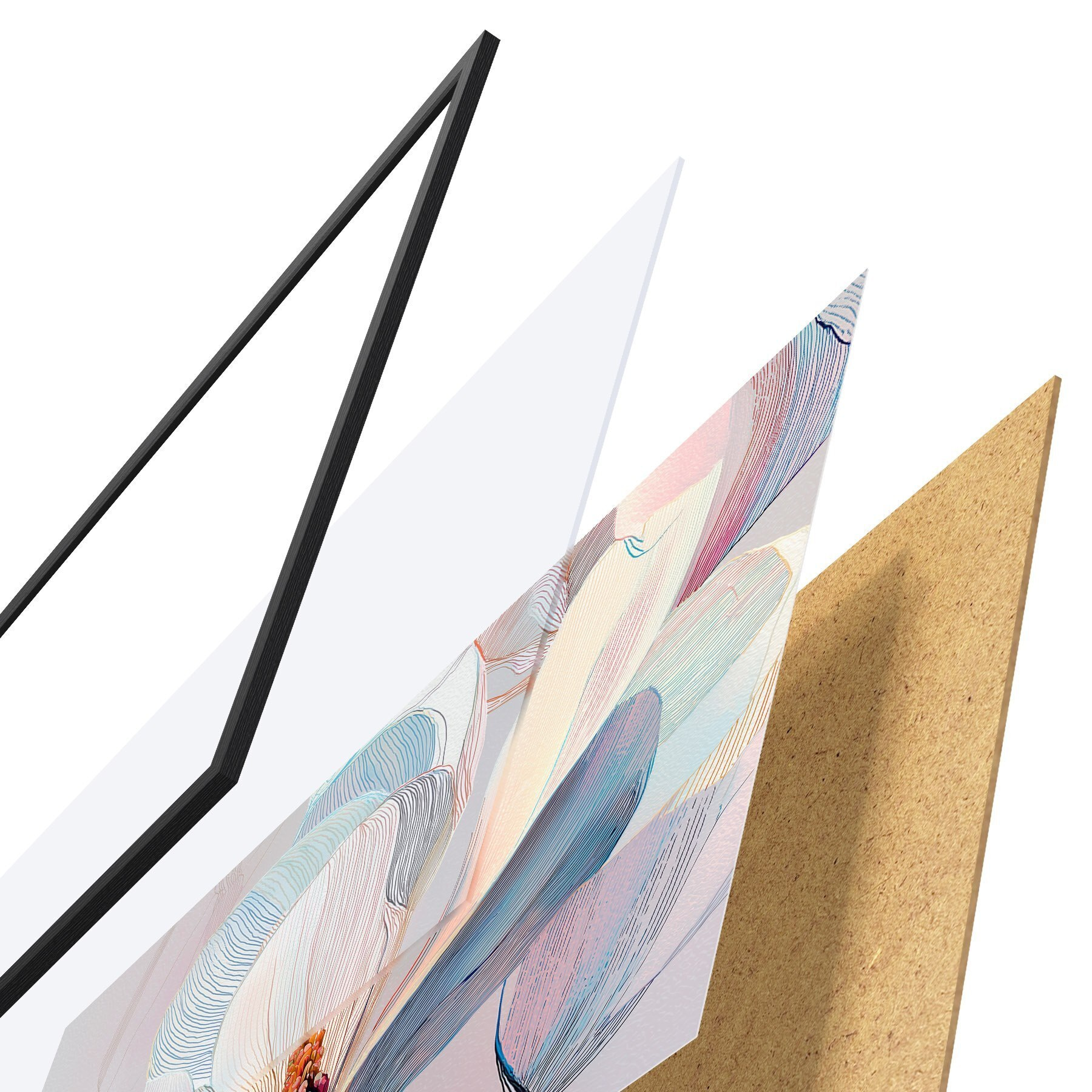 L’affiche encadrée est composée d’un cadre, d’un plexiglas, d’une image imprimée et d’un support en aggloméré. Elle est prête à être accrochée au mur grâce aux fixations situées à l’arrière.