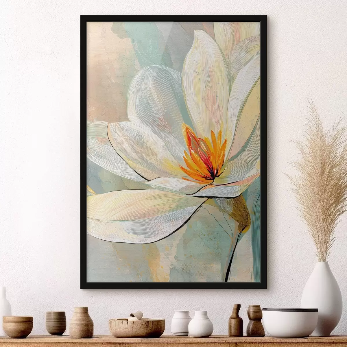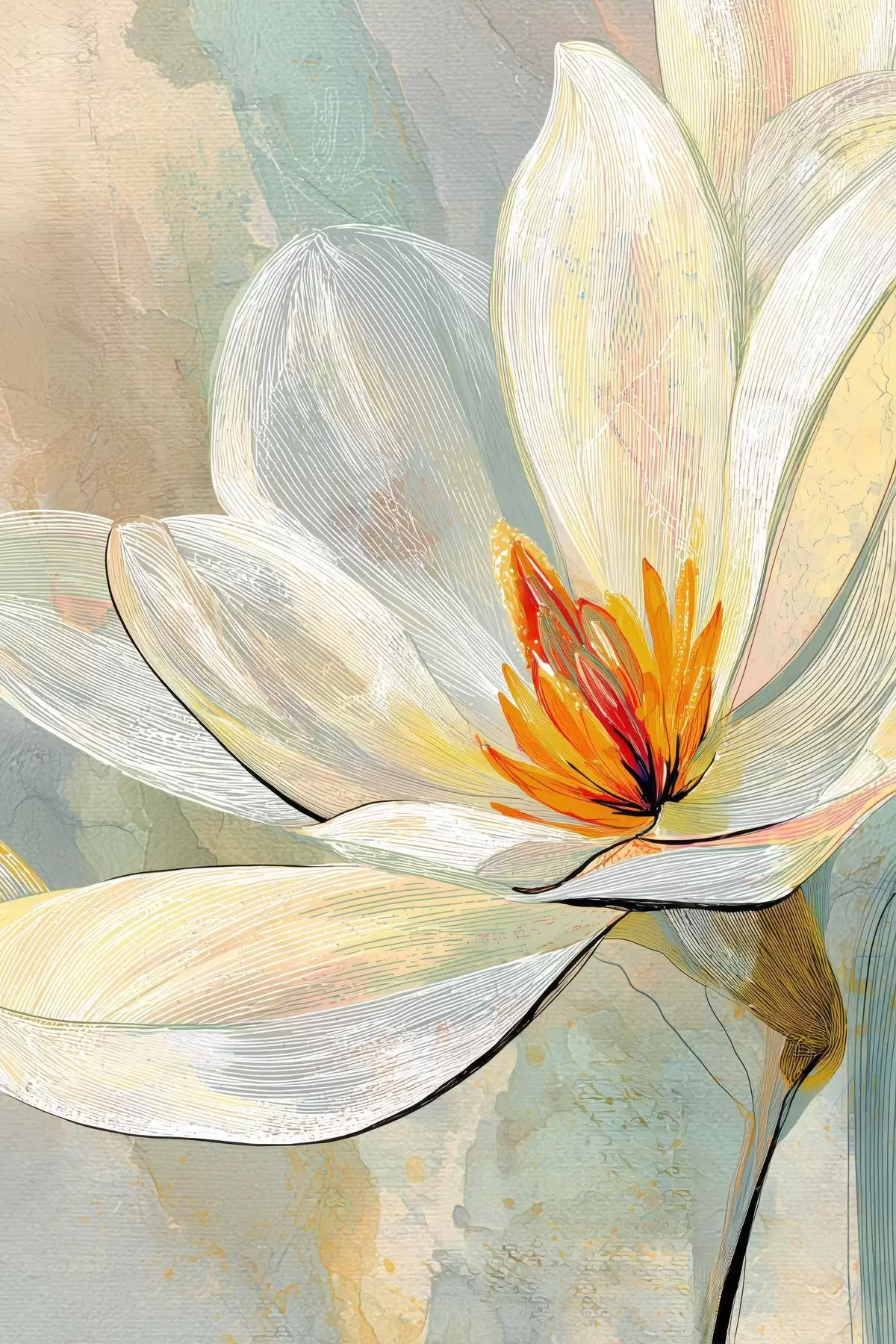 Poster Magnolias abstraits dans une palette pastel mettant l'accent sur les graphismes linéaires Nr f47970