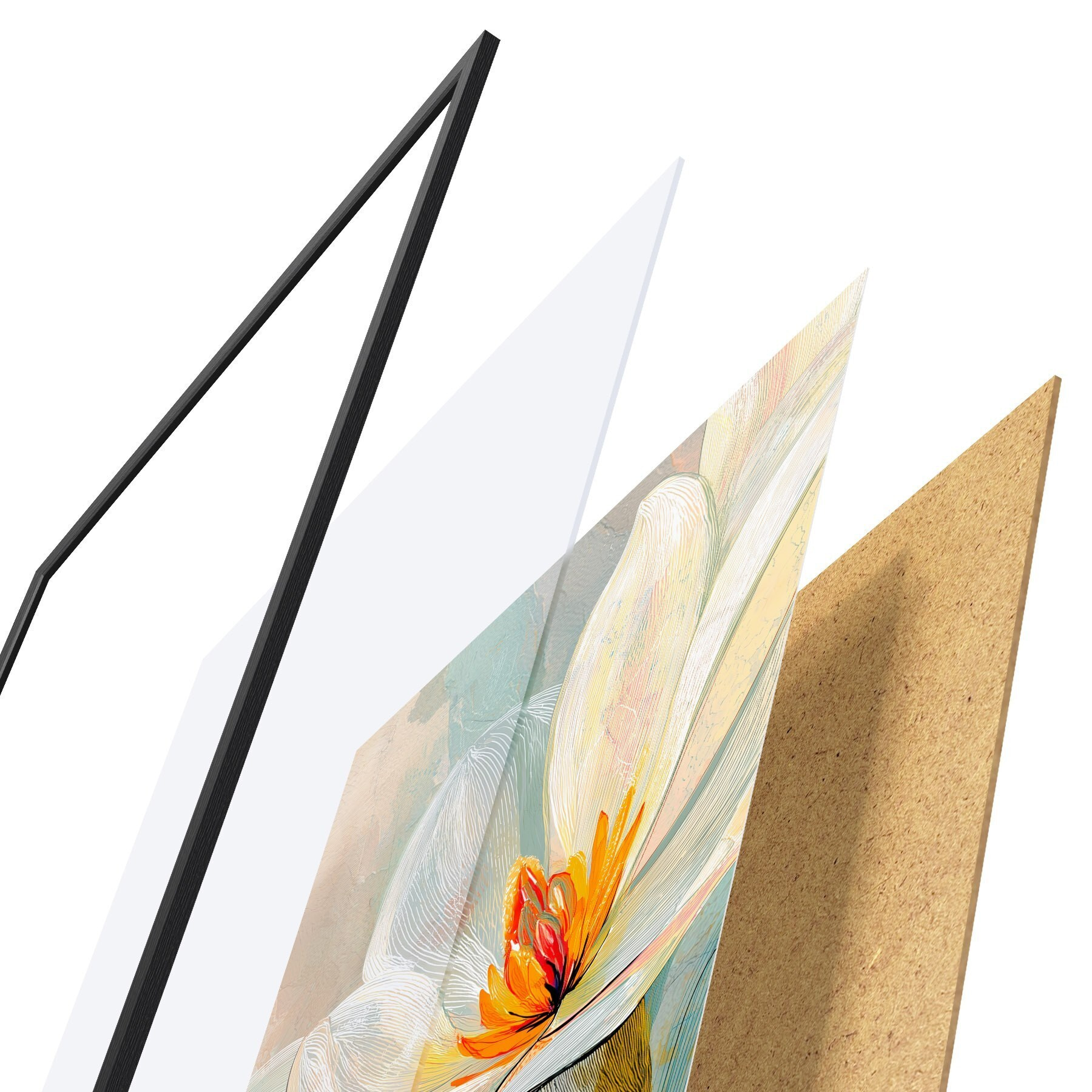 L’affiche encadrée est composée d’un cadre, d’un plexiglas, d’une image imprimée et d’un support en aggloméré. Elle est prête à être accrochée au mur grâce aux fixations situées à l’arrière.