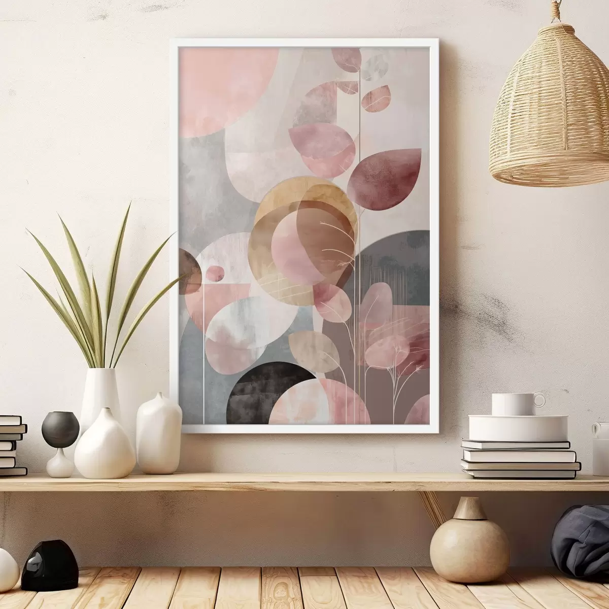 Poster Art floral dans les tons beige-rose dans un style minimaliste f47976