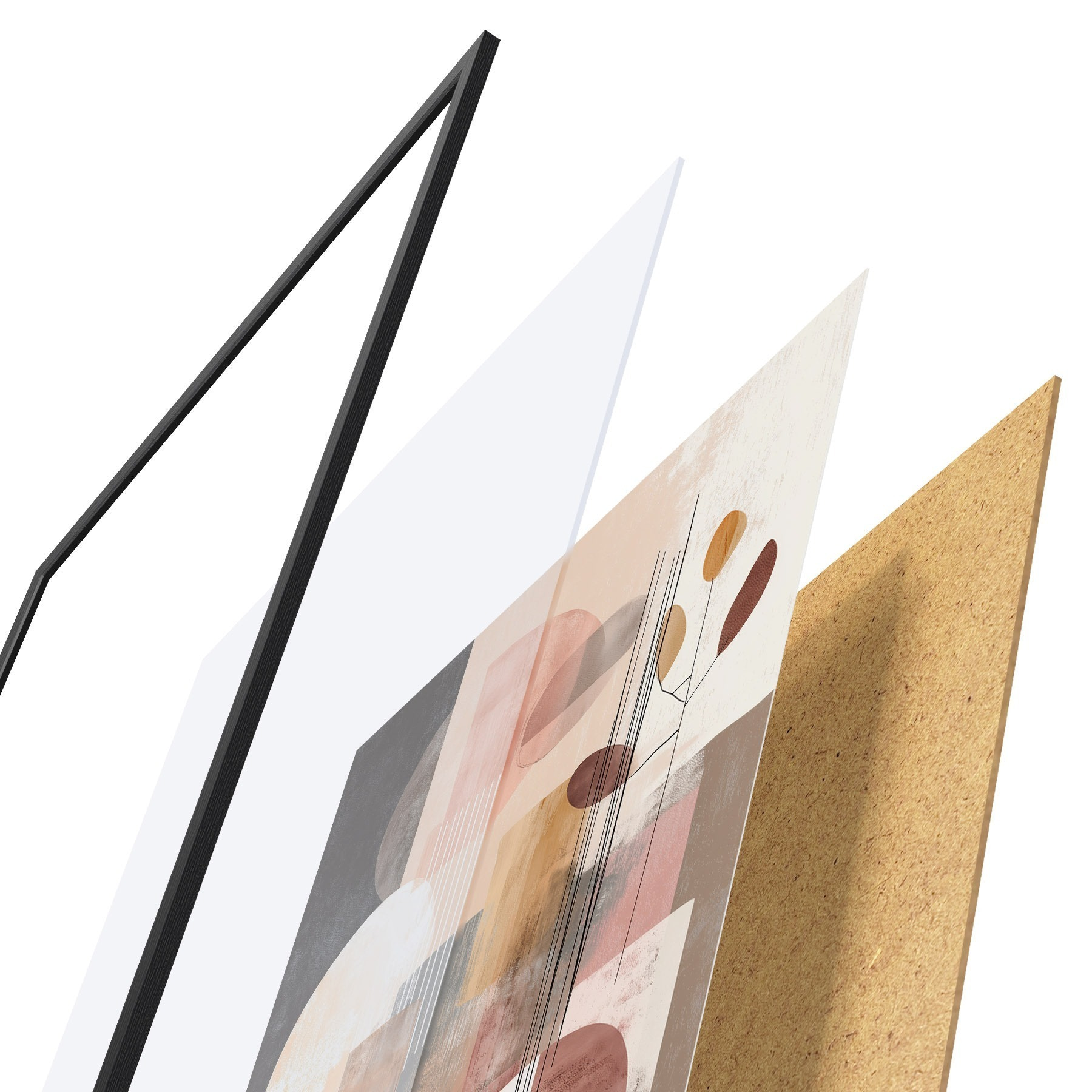 L’affiche encadrée est composée d’un cadre, d’un plexiglas, d’une image imprimée et d’un support en aggloméré. Elle est prête à être accrochée au mur grâce aux fixations situées à l’arrière.
