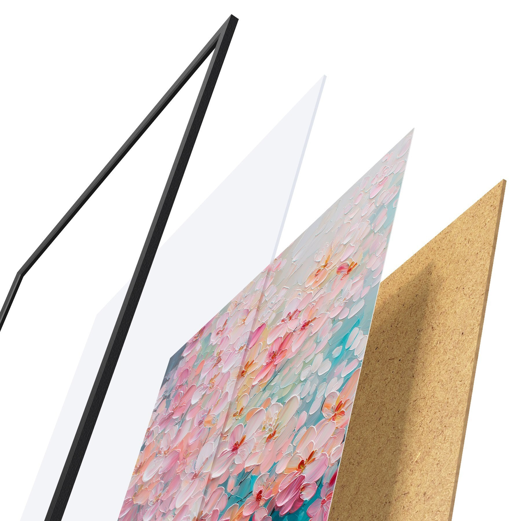 L’affiche encadrée est composée d’un cadre, d’un plexiglas, d’une image imprimée et d’un support en aggloméré. Elle est prête à être accrochée au mur grâce aux fixations situées à l’arrière.