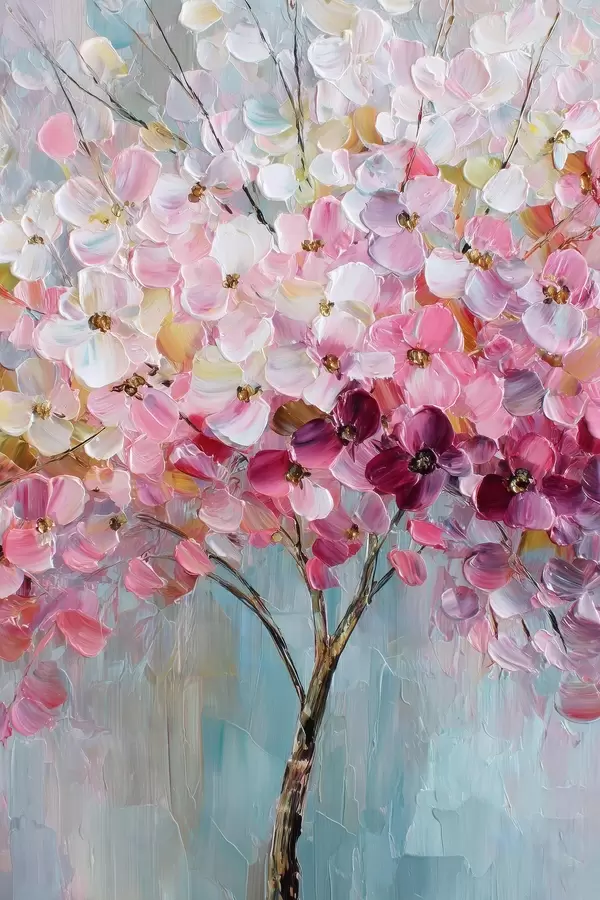 Poster De délicates fleurs roses se détachent sur un ciel clair. f47988
