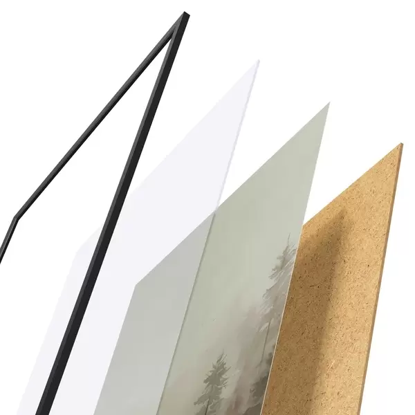L’affiche encadrée est composée d’un cadre, d’un plexiglas, d’une image imprimée et d’un support en aggloméré. Elle est prête à être accrochée au mur grâce aux fixations situées à l’arrière.