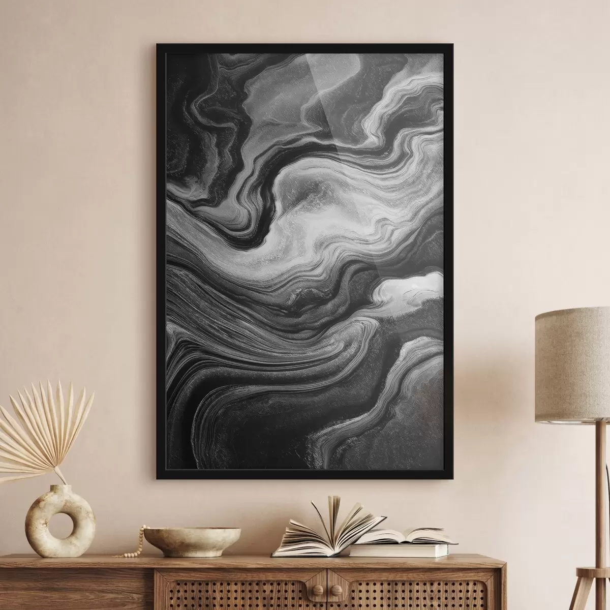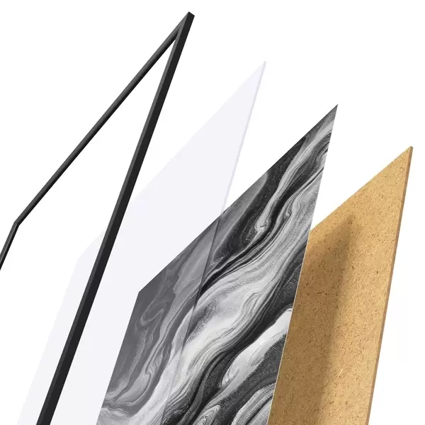 L’affiche encadrée est composée d’un cadre, d’un plexiglas, d’une image imprimée et d’un support en aggloméré. Elle est prête à être accrochée au mur grâce aux fixations situées à l’arrière.