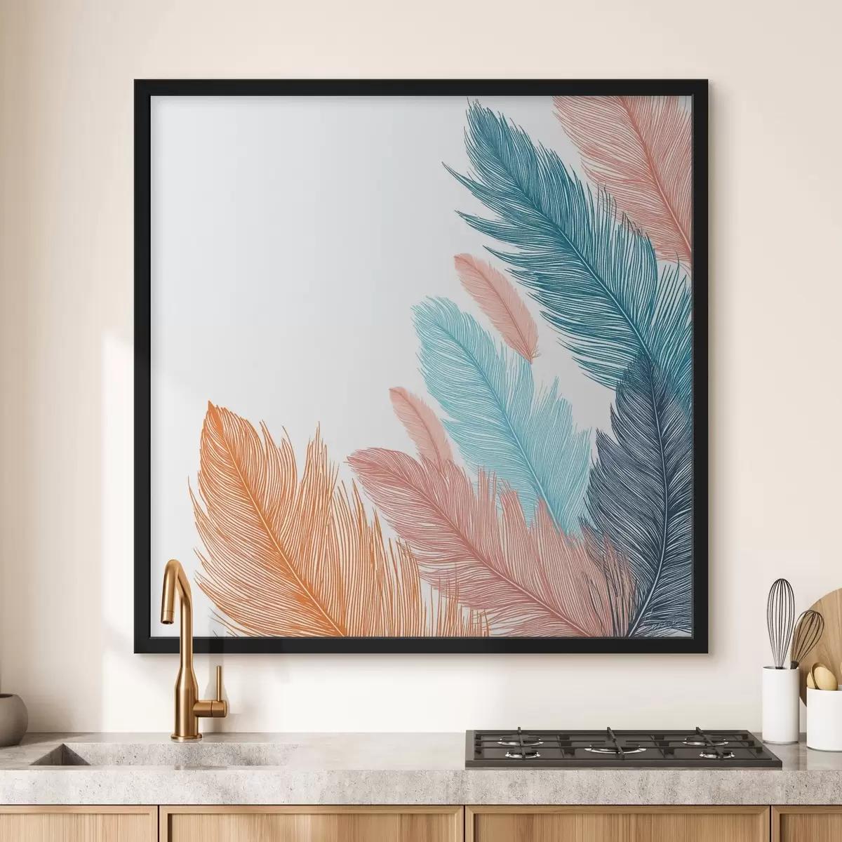 Poster Plumes multicolores sur fond blanc Nr f48003