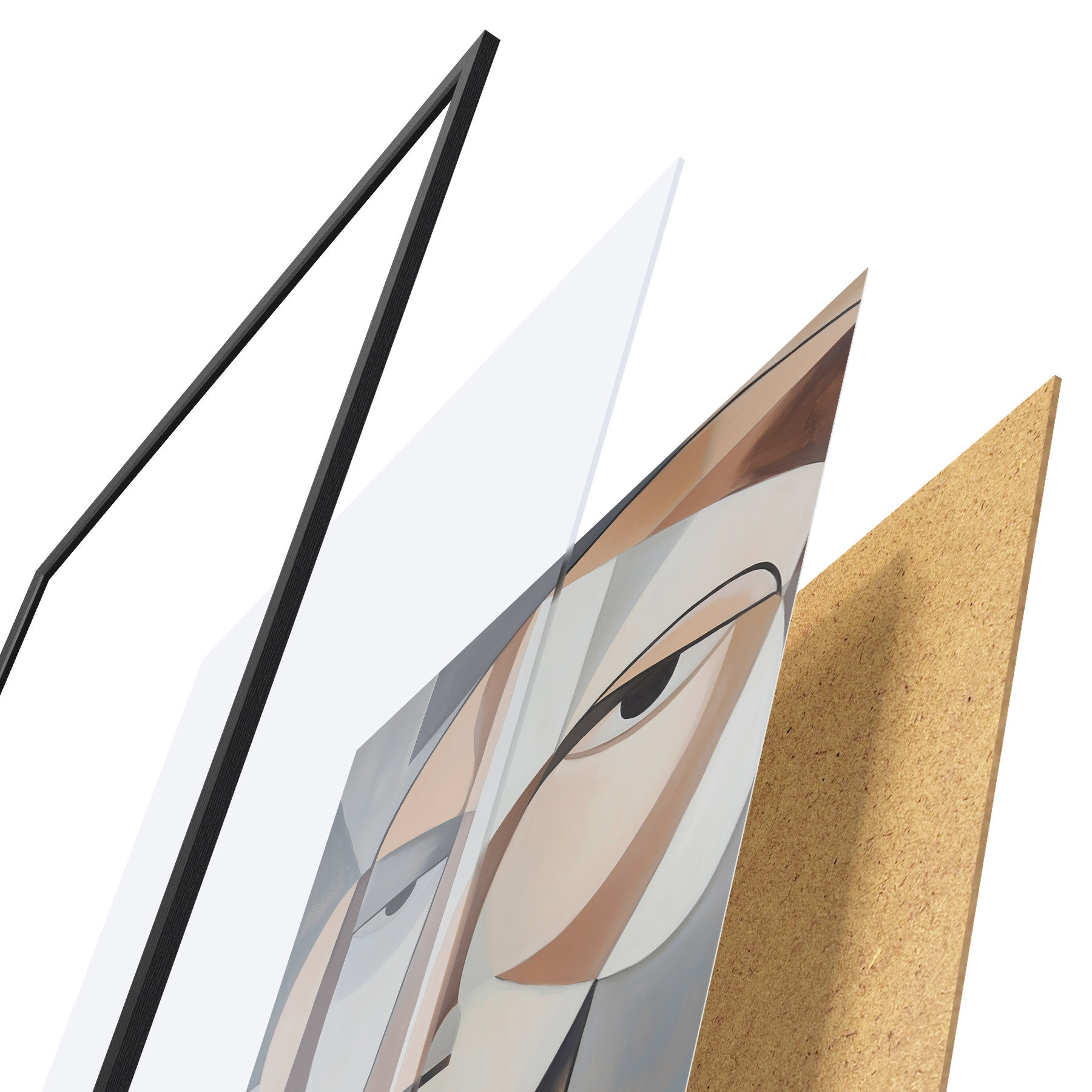 L’affiche encadrée est composée d’un cadre, d’un plexiglas, d’une image imprimée et d’un support en aggloméré. Elle est prête à être accrochée au mur grâce aux fixations situées à l’arrière.