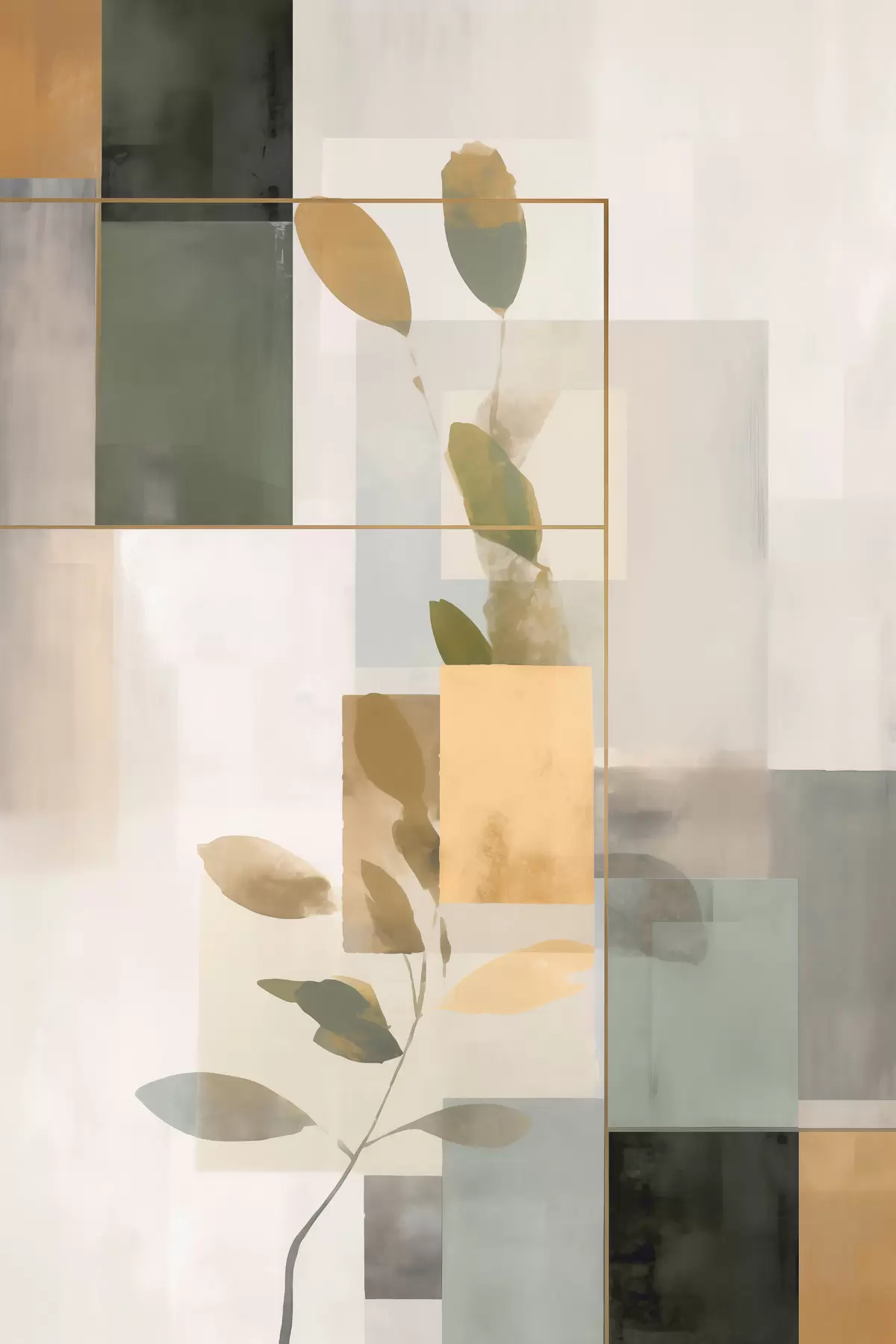 Poster Abstraction géométrique avec des branches de feuilles Nr f48020