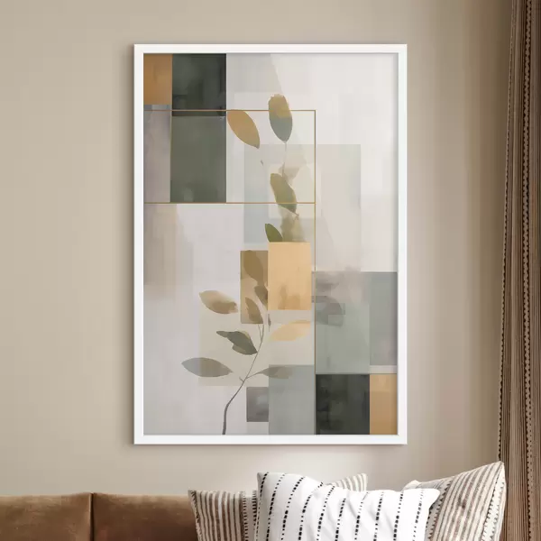 Poster Abstraction géométrique avec des branches de feuilles f48020