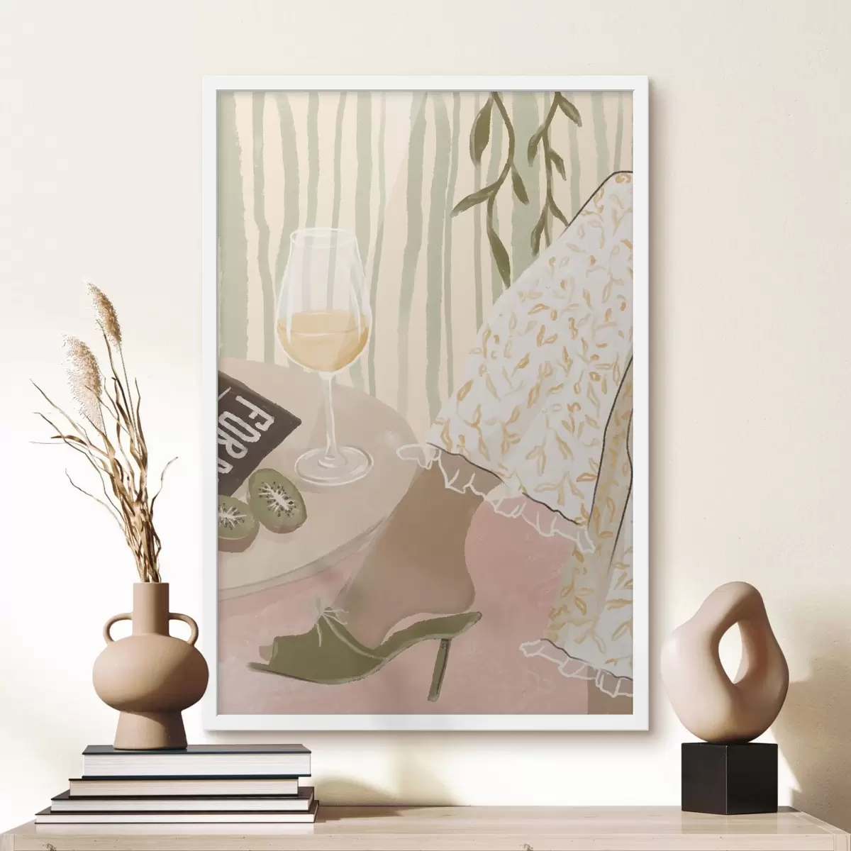 Poster Table avec verre à vin et kiwi près de la robe Nr f48021