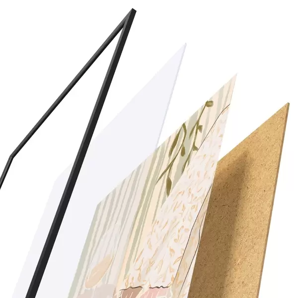 L’affiche encadrée est composée d’un cadre, d’un plexiglas, d’une image imprimée et d’un support en aggloméré. Elle est prête à être accrochée au mur grâce aux fixations situées à l’arrière.