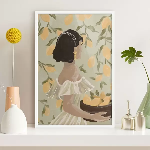 Poster Femme tenant un bol de citrons par les branches Nr f48023