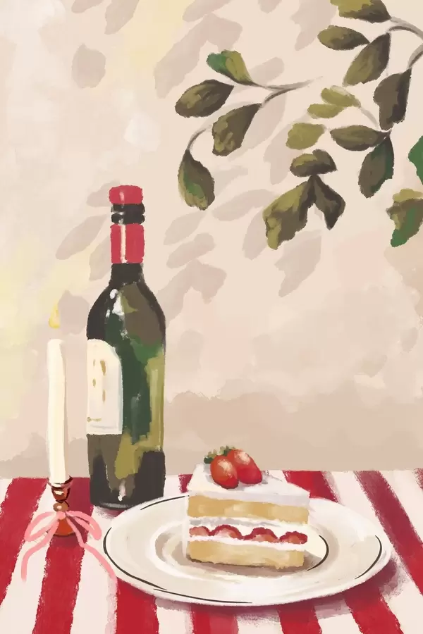 Poster Nature morte avec vin, bougie et gâteau Nr f48024