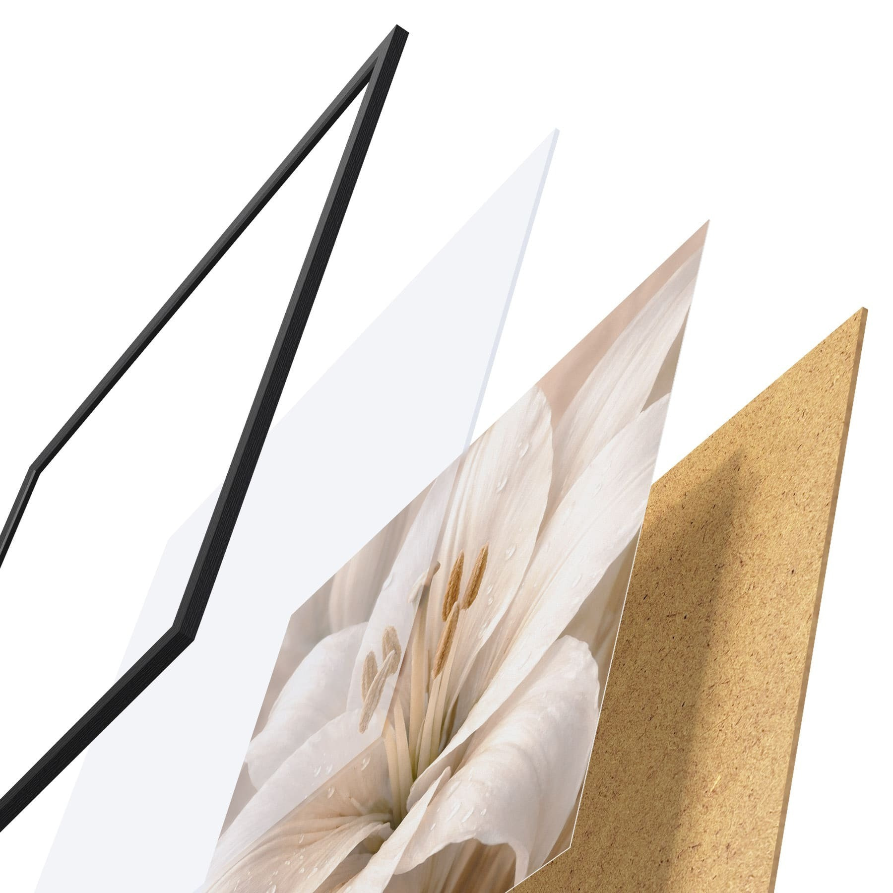 L’affiche encadrée est composée d’un cadre, d’un plexiglas, d’une image imprimée et d’un support en aggloméré. Elle est prête à être accrochée au mur grâce aux fixations situées à l’arrière.