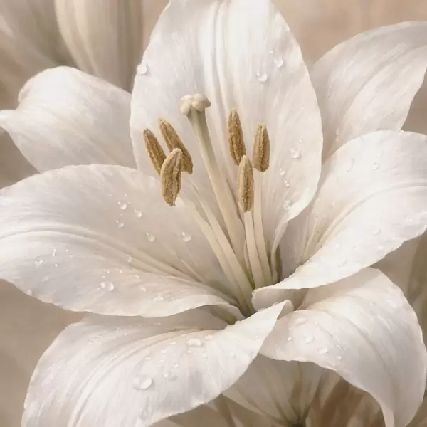 Poster Gros plan sur une fleur blanche avec des gouttelettes d'eau Nr f48028