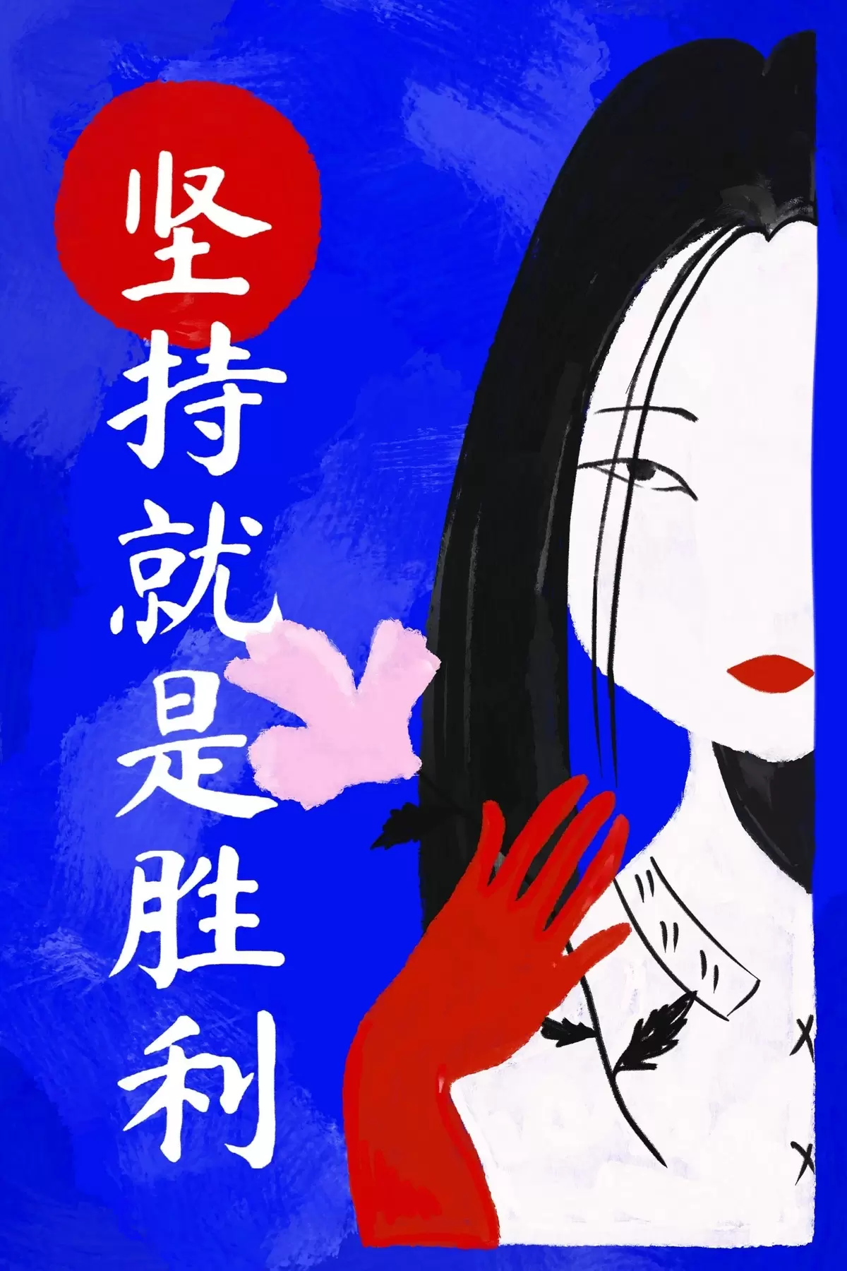 Poster Portrait stylisé d'une femme sur fond bleu, accompagné d'un texte f48032