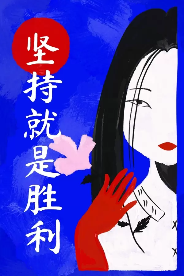 Poster Portrait stylisé d'une femme sur fond bleu, accompagné d'un texte Nr f48032