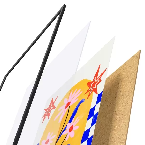 L’affiche encadrée est composée d’un cadre, d’un plexiglas, d’une image imprimée et d’un support en aggloméré. Elle est prête à être accrochée au mur grâce aux fixations situées à l’arrière.