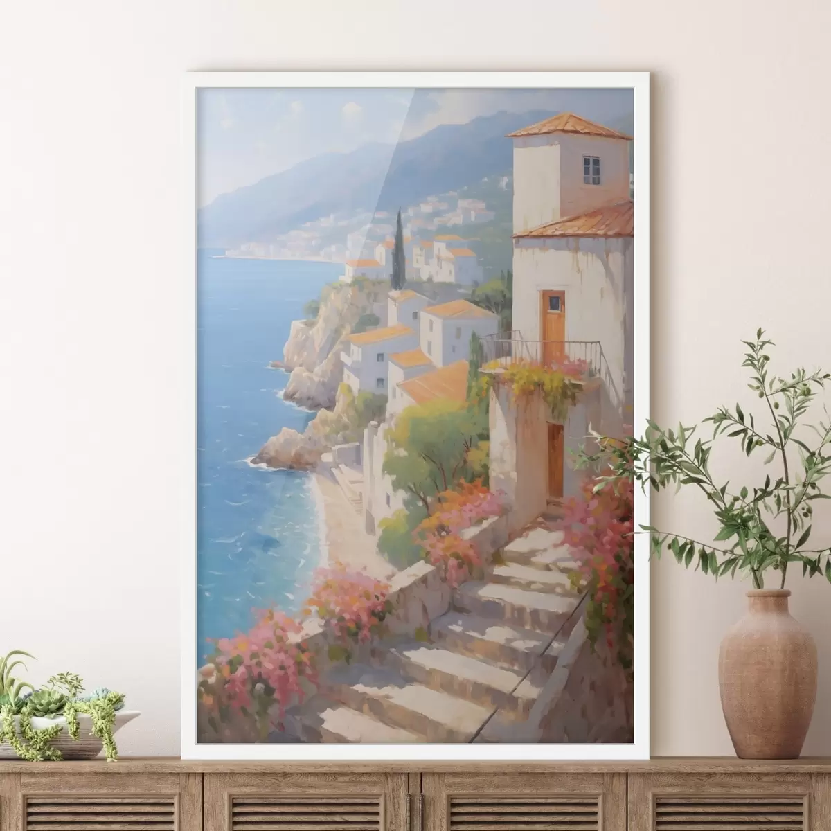 Poster village méditerranéen impressionniste à flanc de falaise f48060
