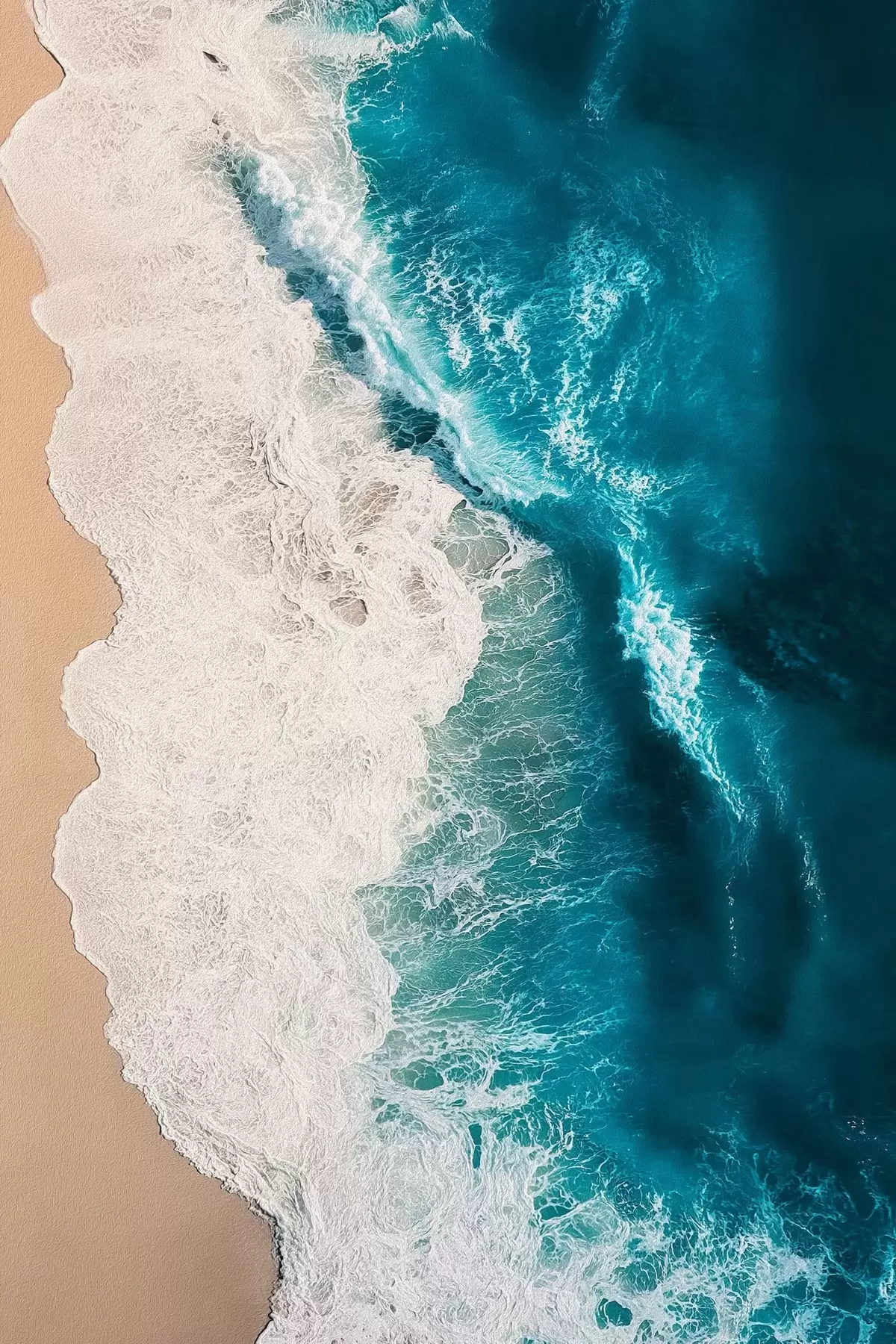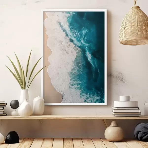 Poster vue aérienne des vagues de l'océan venant se briser sur une plage de sable Nr f48062