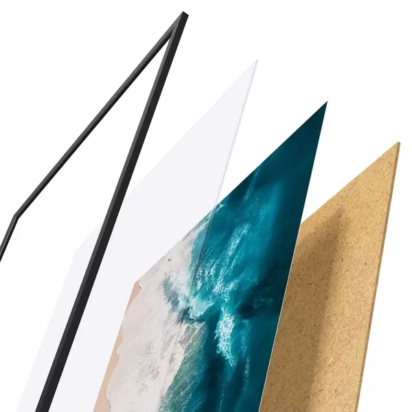 L’affiche encadrée est composée d’un cadre, d’un plexiglas, d’une image imprimée et d’un support en aggloméré. Elle est prête à être accrochée au mur grâce aux fixations situées à l’arrière.