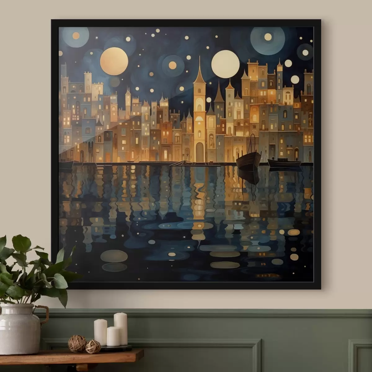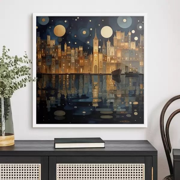 Poster ville nocturne fantaisiste au bord de l'eau Nr f48063