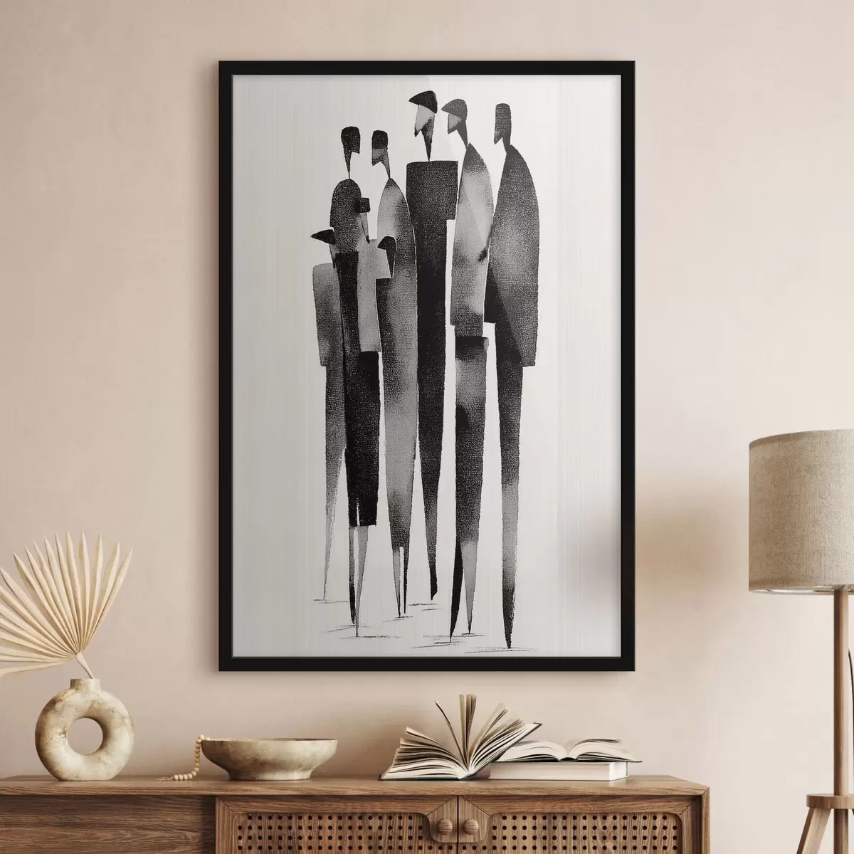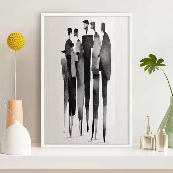 Poster figures humaines minimalistes allongées, debout en rang f48068