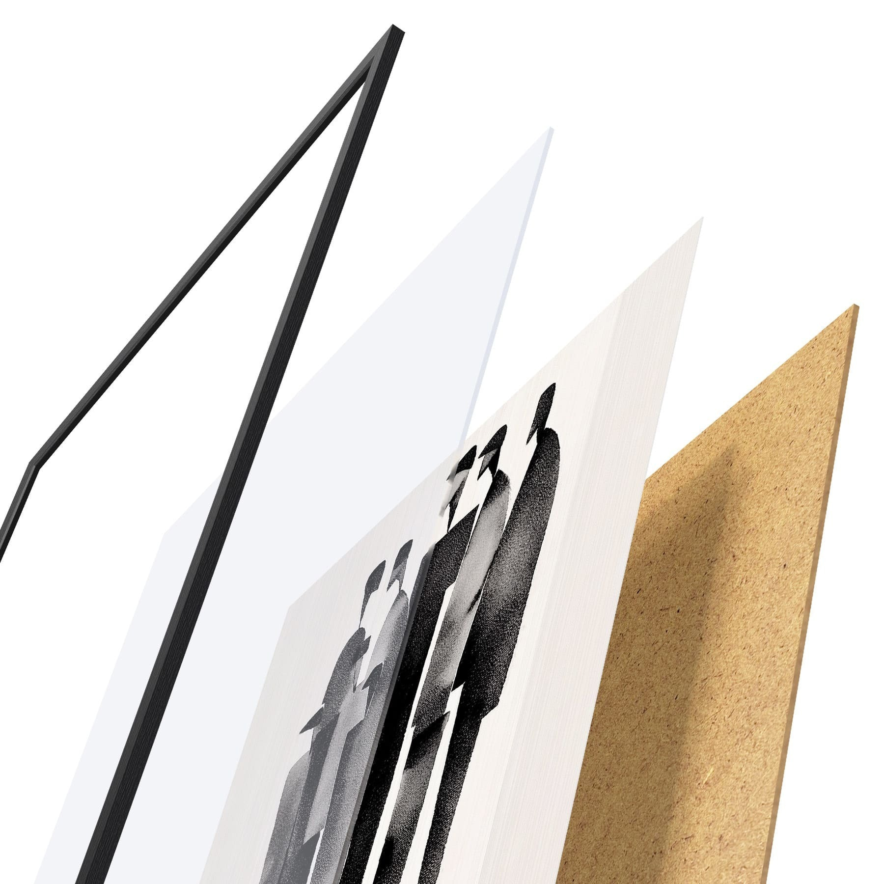 L’affiche encadrée est composée d’un cadre, d’un plexiglas, d’une image imprimée et d’un support en aggloméré. Elle est prête à être accrochée au mur grâce aux fixations situées à l’arrière.