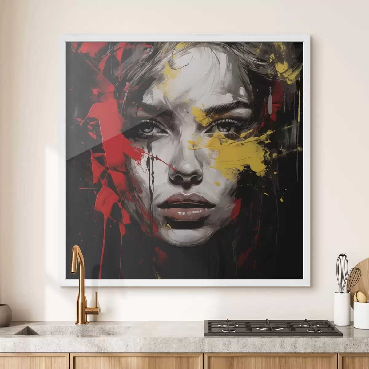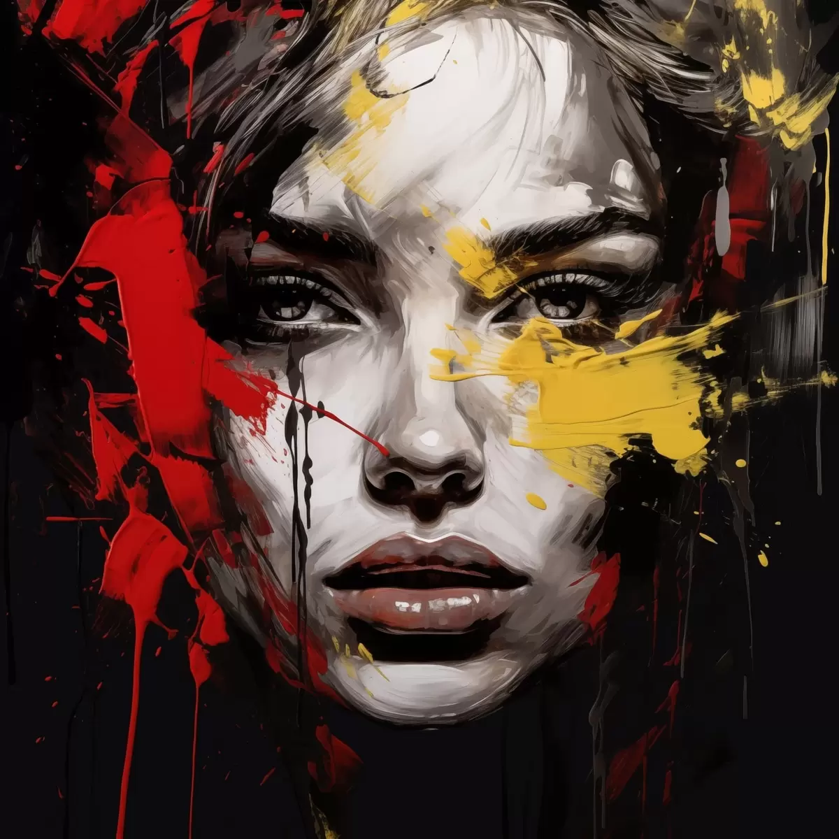 Poster Portrait de femme avec des traits rouges et jaunes Nr f48089