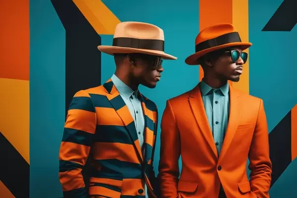 Poster Deux hommes en costumes et chapeaux colorés f48091
