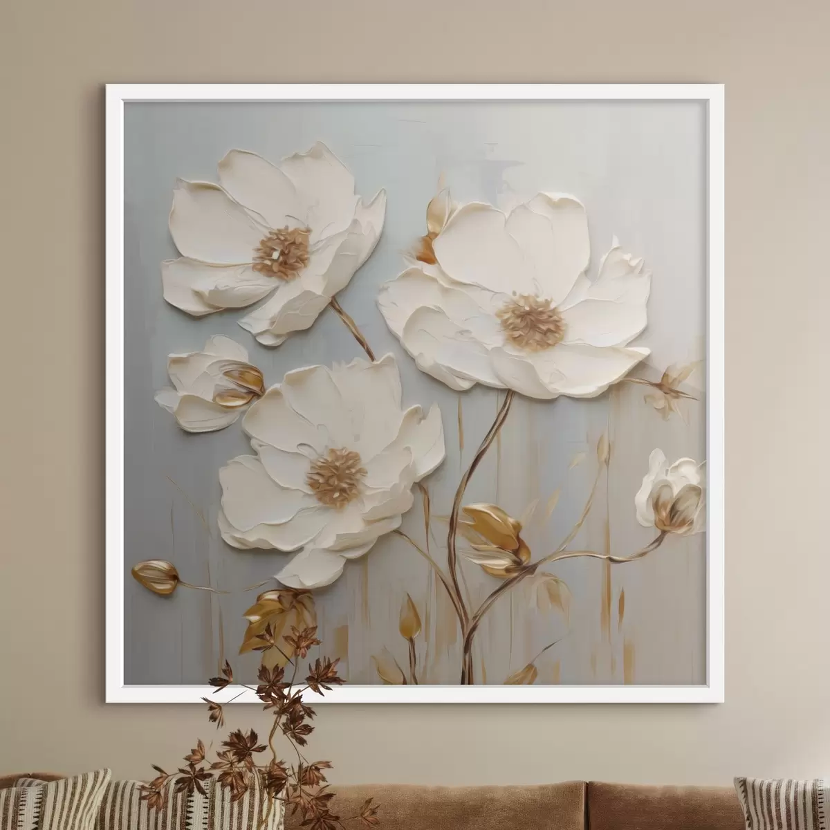 Nous vendons des tableaux sur châssis - il s'agit d'un cadre en bois sur lequel la toile est tendue. Ce tableau n'a pas besoin d'être encadré ; vous pouvez l'accrocher directement au mur.