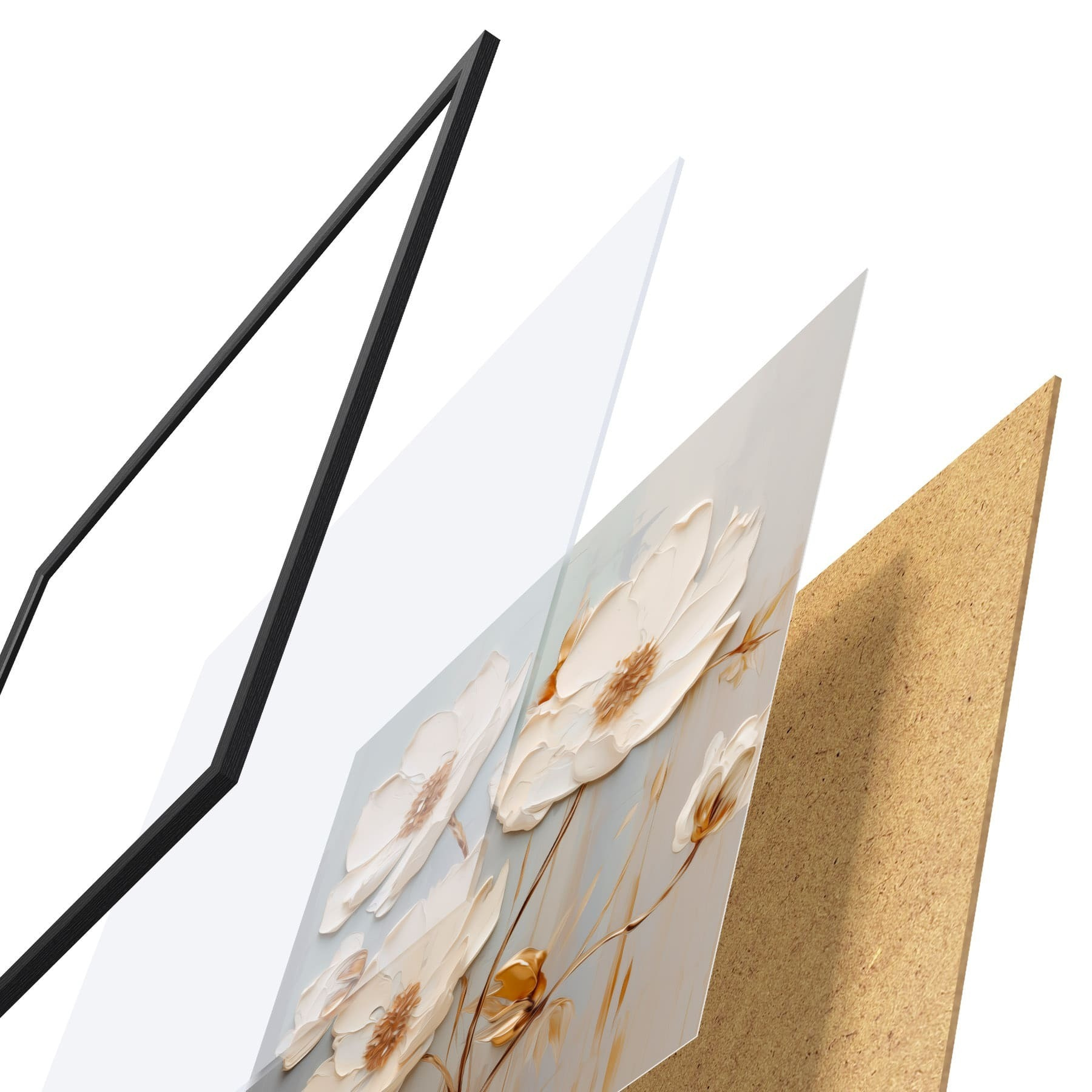 L’affiche encadrée est composée d’un cadre, d’un plexiglas, d’une image imprimée et d’un support en aggloméré. Elle est prête à être accrochée au mur grâce aux fixations situées à l’arrière.