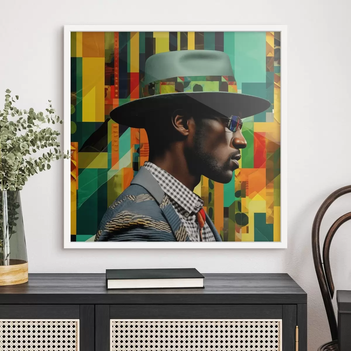 Poster Portrait d'un homme coiffé d'un chapeau sur un fond coloré f48100
