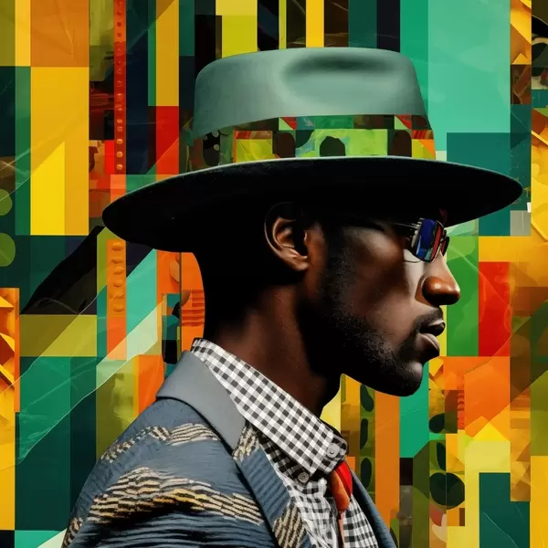 Poster Portrait d'un homme coiffé d'un chapeau sur un fond coloré f48100