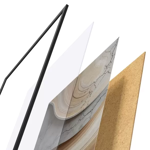 L’affiche encadrée est composée d’un cadre, d’un plexiglas, d’une image imprimée et d’un support en aggloméré. Elle est prête à être accrochée au mur grâce aux fixations situées à l’arrière.