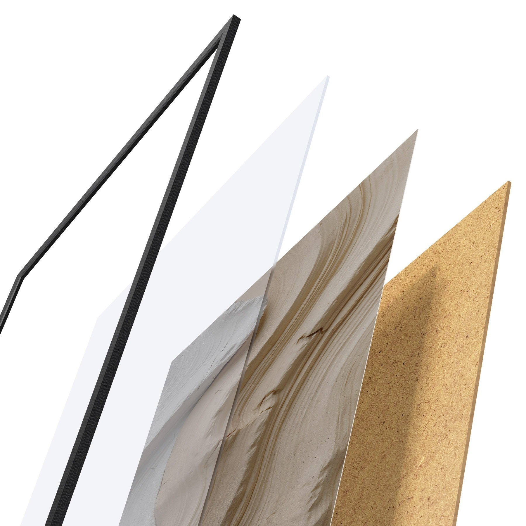 L’affiche encadrée est composée d’un cadre, d’un plexiglas, d’une image imprimée et d’un support en aggloméré. Elle est prête à être accrochée au mur grâce aux fixations situées à l’arrière.