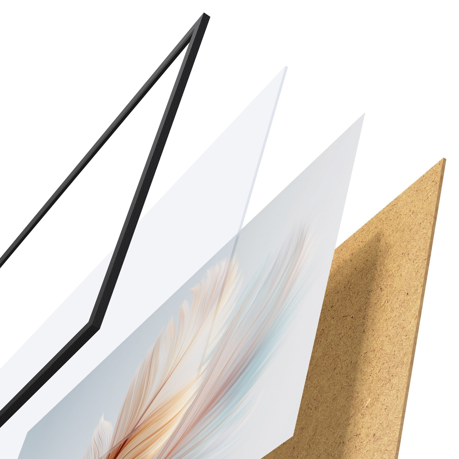L’affiche encadrée est composée d’un cadre, d’un plexiglas, d’une image imprimée et d’un support en aggloméré. Elle est prête à être accrochée au mur grâce aux fixations situées à l’arrière.