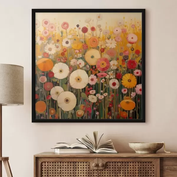 Poster champ de fleurs ornementales aux couleurs vives f48112