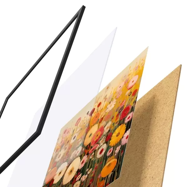 L’affiche encadrée est composée d’un cadre, d’un plexiglas, d’une image imprimée et d’un support en aggloméré. Elle est prête à être accrochée au mur grâce aux fixations situées à l’arrière.