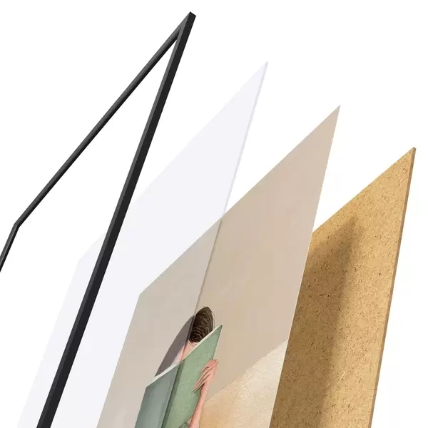 L’affiche encadrée est composée d’un cadre, d’un plexiglas, d’une image imprimée et d’un support en aggloméré. Elle est prête à être accrochée au mur grâce aux fixations situées à l’arrière.