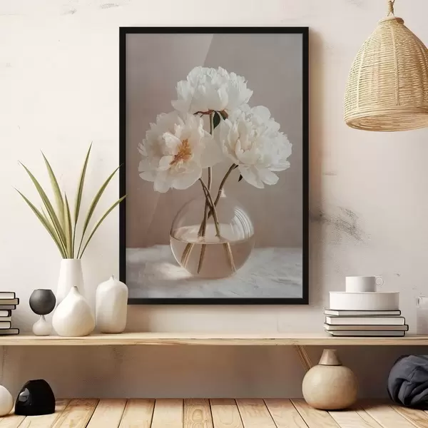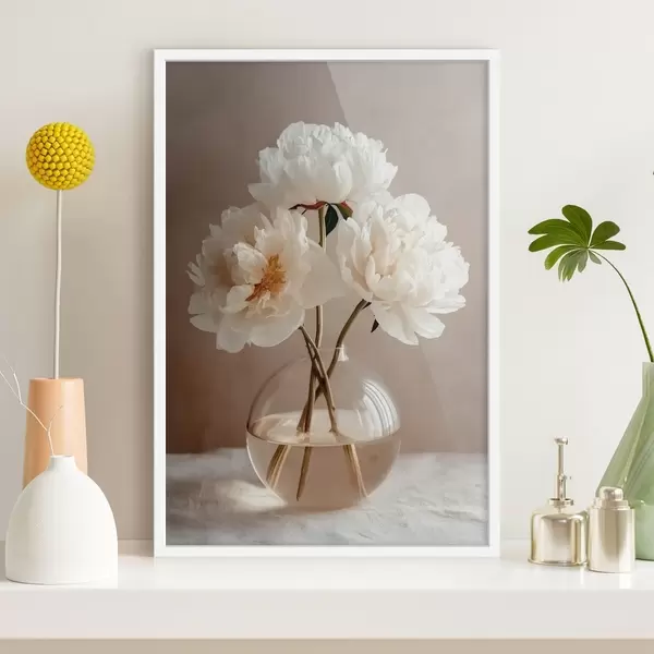 Poster nature morte minimaliste et aérienne avec des pivoines Nr f48119