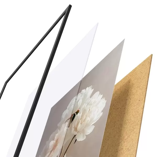 L’affiche encadrée est composée d’un cadre, d’un plexiglas, d’une image imprimée et d’un support en aggloméré. Elle est prête à être accrochée au mur grâce aux fixations situées à l’arrière.