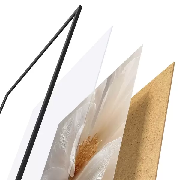 L’affiche encadrée est composée d’un cadre, d’un plexiglas, d’une image imprimée et d’un support en aggloméré. Elle est prête à être accrochée au mur grâce aux fixations situées à l’arrière.