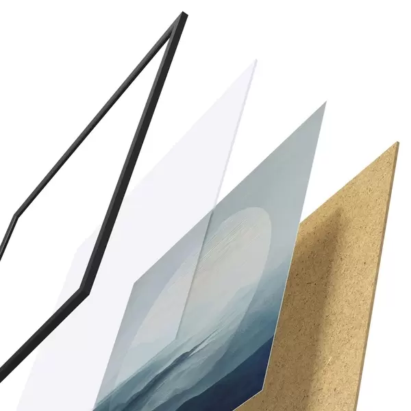 L’affiche encadrée est composée d’un cadre, d’un plexiglas, d’une image imprimée et d’un support en aggloméré. Elle est prête à être accrochée au mur grâce aux fixations situées à l’arrière.