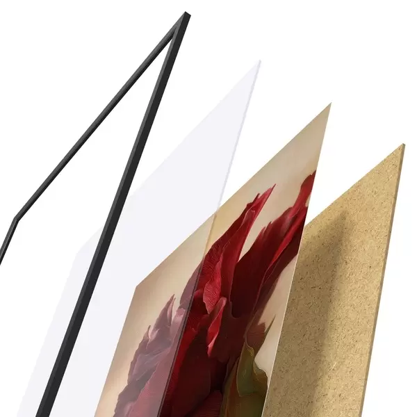 L’affiche encadrée est composée d’un cadre, d’un plexiglas, d’une image imprimée et d’un support en aggloméré. Elle est prête à être accrochée au mur grâce aux fixations situées à l’arrière.