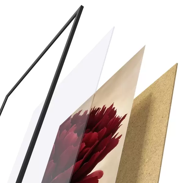 L’affiche encadrée est composée d’un cadre, d’un plexiglas, d’une image imprimée et d’un support en aggloméré. Elle est prête à être accrochée au mur grâce aux fixations situées à l’arrière.