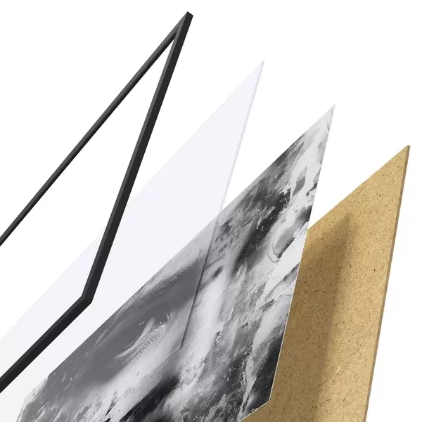 L’affiche encadrée est composée d’un cadre, d’un plexiglas, d’une image imprimée et d’un support en aggloméré. Elle est prête à être accrochée au mur grâce aux fixations situées à l’arrière.