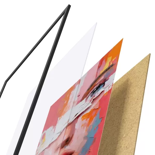 L’affiche encadrée est composée d’un cadre, d’un plexiglas, d’une image imprimée et d’un support en aggloméré. Elle est prête à être accrochée au mur grâce aux fixations situées à l’arrière.