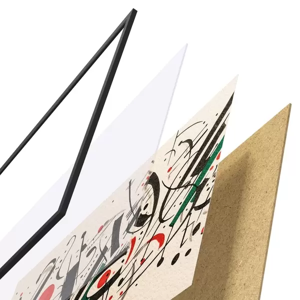 L’affiche encadrée est composée d’un cadre, d’un plexiglas, d’une image imprimée et d’un support en aggloméré. Elle est prête à être accrochée au mur grâce aux fixations situées à l’arrière.